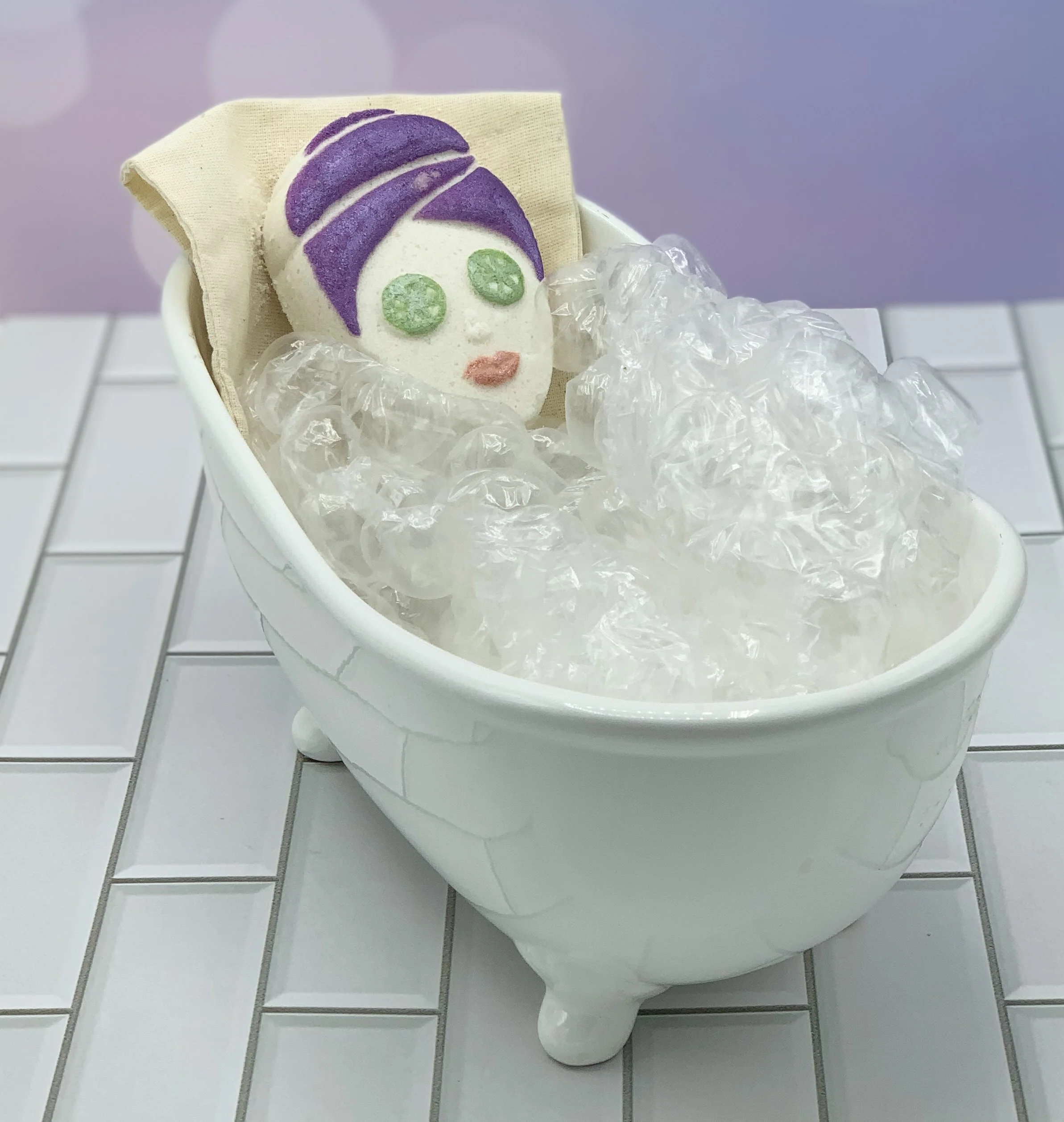 Unwrap bath bomb and float gently into tub water. Bath bomb will fizz and foam, releasing moisturizing oils and scent. An emulsifier is added to ensure that colors will not stain or leave a color ring around tub. Not intended for children under 3. Do not eat.